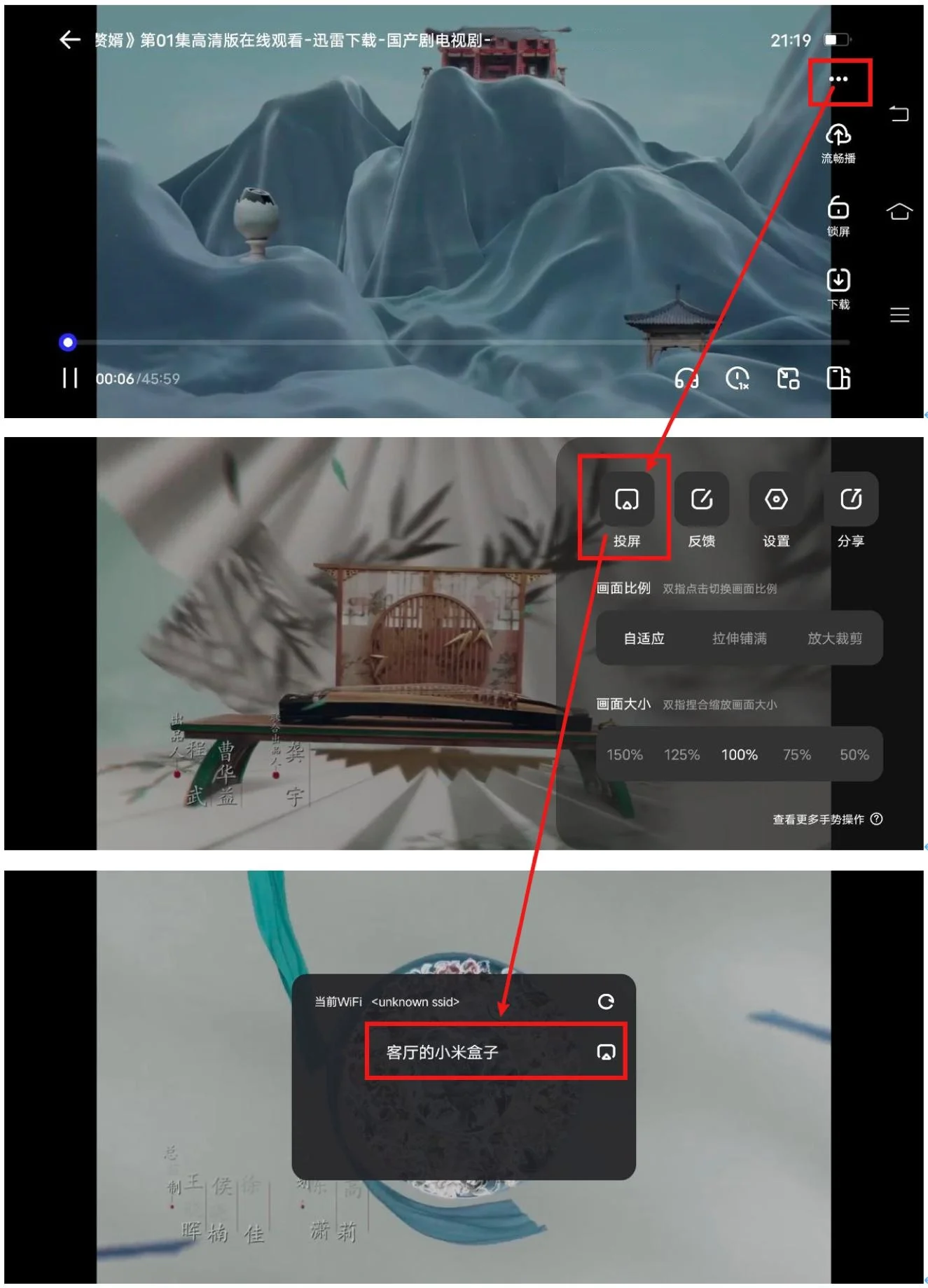 打开安卓UC浏览器->打开免费短视频分享大全 - 婷好影视->开始播放->全屏->左下角投屏->等待搜寻到智能电视/电视盒子->选中,即可投屏。